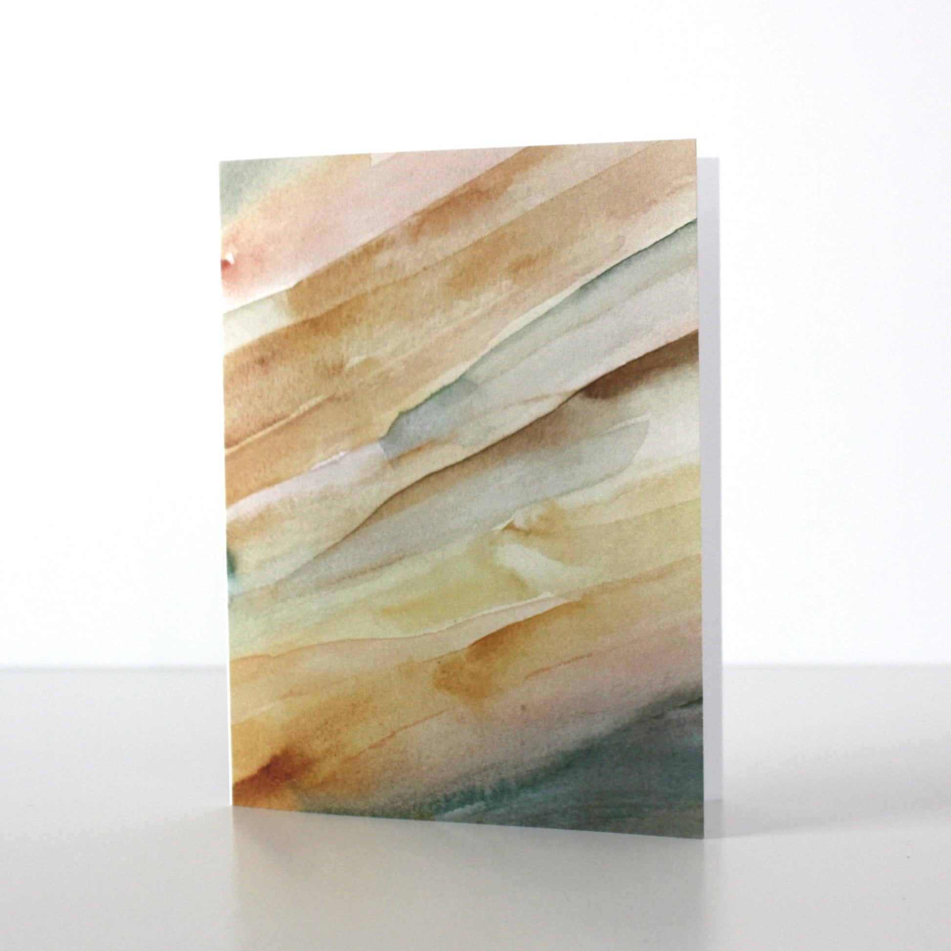 A beautiful blank watercolor card in a smaller size. This abstract design was hand-painted by the artist and is printed on premium cardstock for a heavy, quality feel and excellent writability. These cards are an elegant choice for sharing your own sentiment on any occasion. Keep a few on hand so you're always ready with a birthday card, thank you card, congratulations card, or one to say "just thinking of you!"