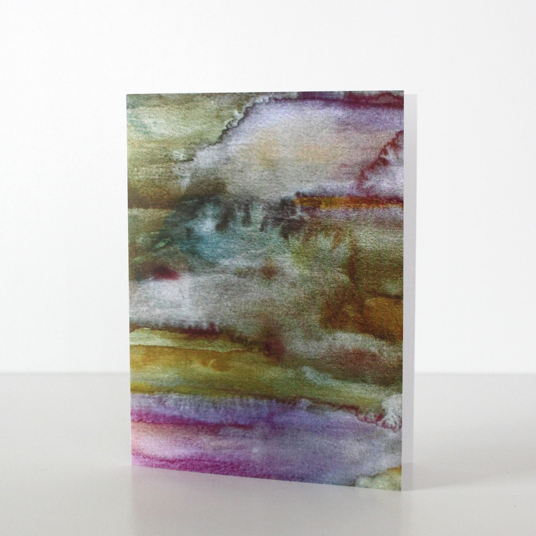A beautiful blank watercolor card in a smaller size. This abstract design was hand-painted by the artist and is printed on premium cardstock for a heavy, quality feel and excellent writability. These cards are an elegant choice for sharing your own sentiment on any occasion. Keep a few on hand so you're always ready with a birthday card, thank you card, congratulations card, or one to say "just thinking of you!"